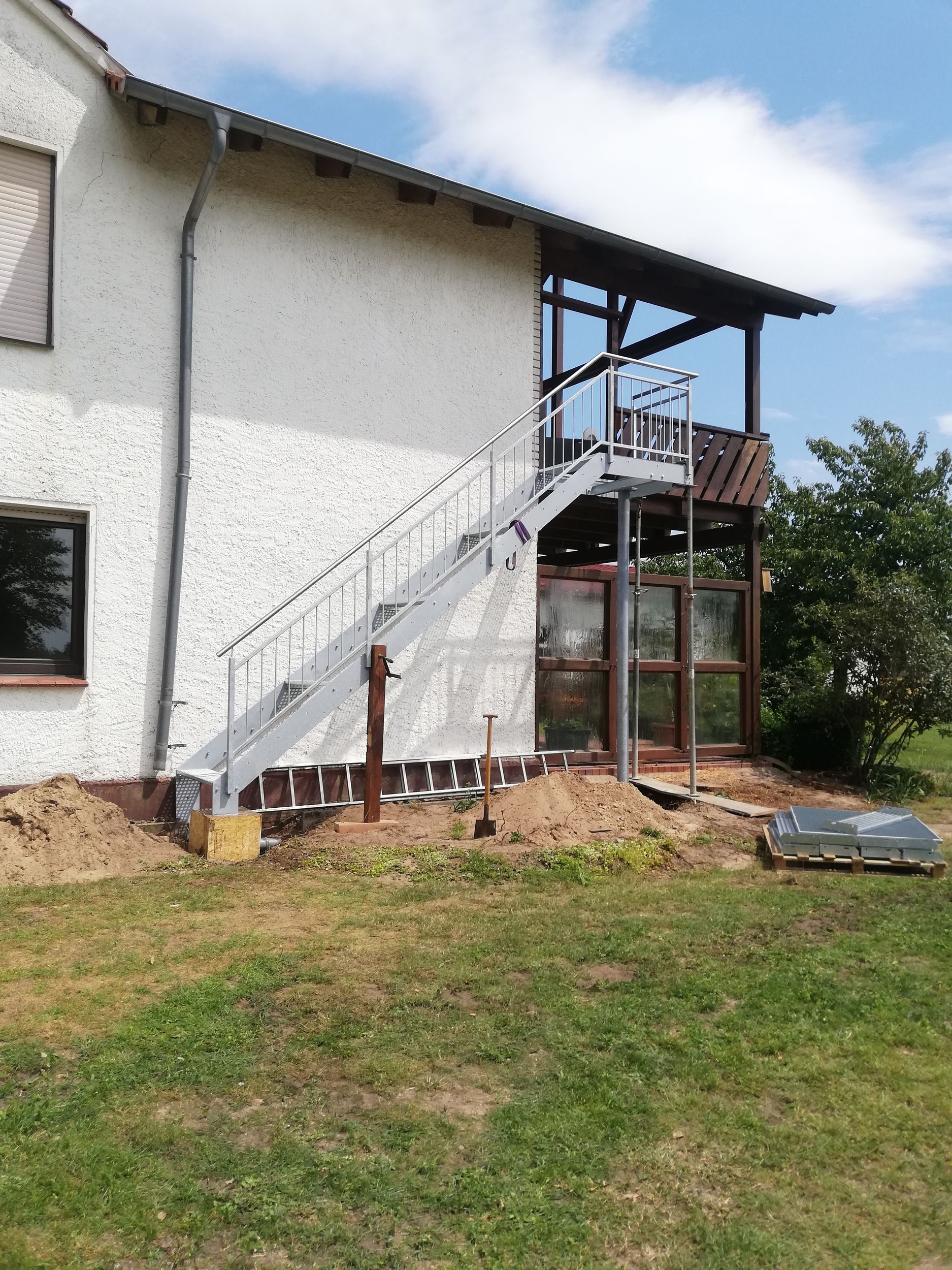 Für außenliegende Treppengeländer werden häufig verzinkter und pulverbeschichteter Stahl oder Edelstahl verwendet, da diese Materialien besonders widerstandsfähig gegen Witterungseinflüsse sind.